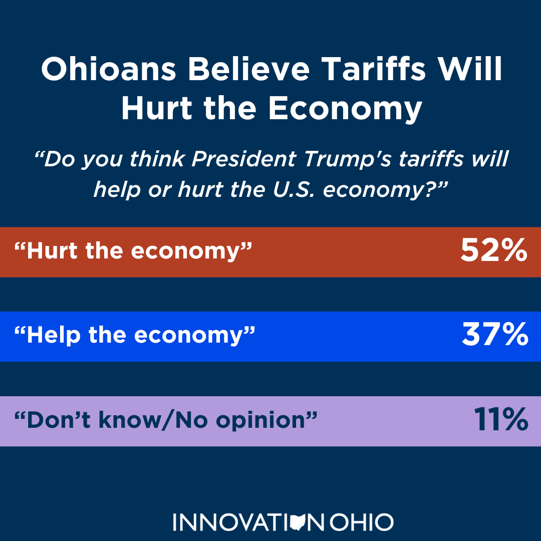 Because Trump claims his blanket tariffs will pay for themselves in the form of a strengthened U.S. economy, we asked Ohioans what they thought. And again we found, voters aren’t buying it.